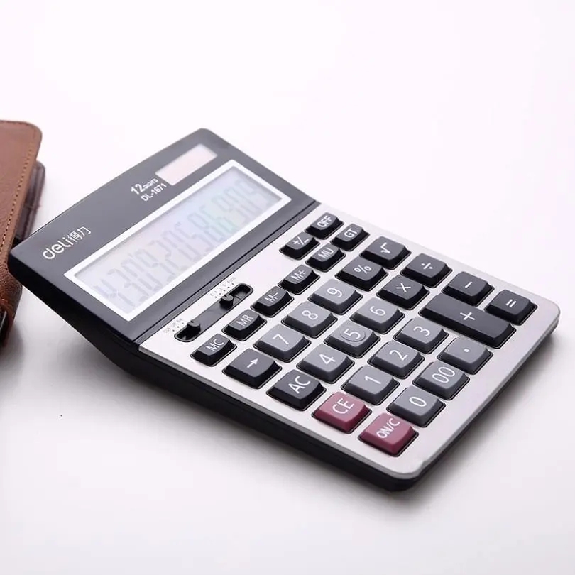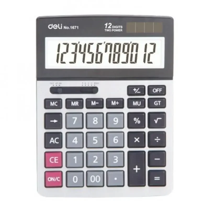 Deli electronic 1671 calculator. Easy to use & reliable, easy to calculator your mathematical expression, give accurate answer your mathematical question & expression, plastic manufacturer, high quality. Check and correct series,12 digit, large display, dual power. Metal face plate. Easy to use for long time. Use your office & school work. 1 piece calculators in box. Color: silver & black.