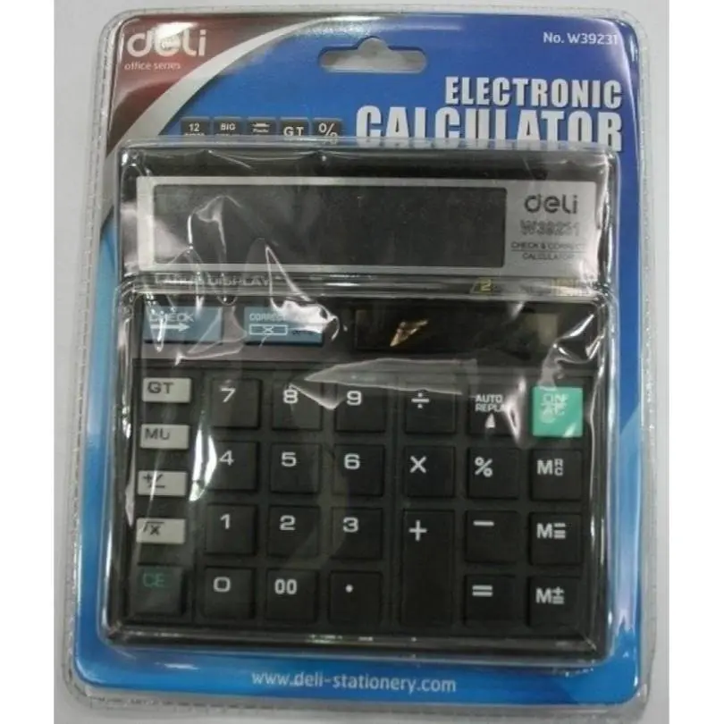 Deli electronic w39231 calculator. Easy to use & reliable, easy to calculator your mathematical expression, give accurate answer your mathematical question & expression, plastic manufacturer, high quality. Check and correct series,12 digit, large display, dual power. Easy to use for long time. Use your office & school work. 1 piece calculators in box. Color: black.