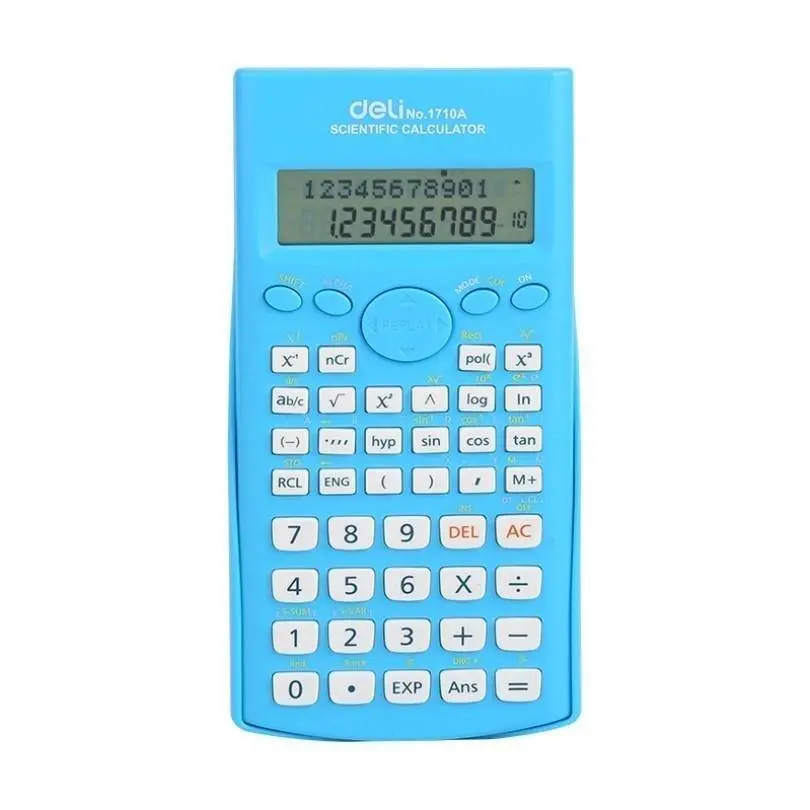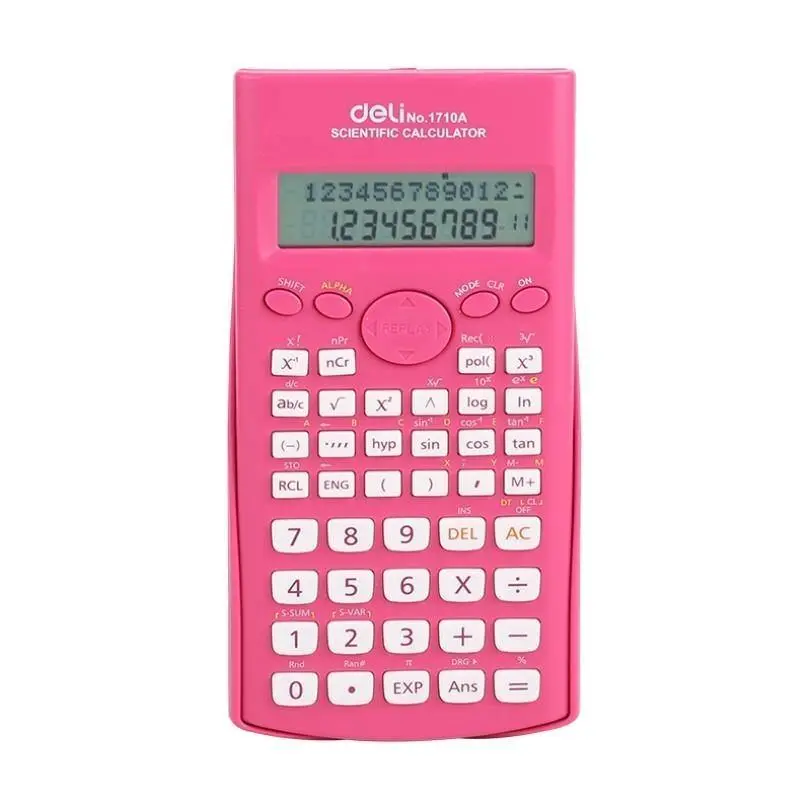 10+2 digits,240 scientific function,9 variables, statistics calculator, fractional arithmetic function, standard deviation calculator, data edit, check and correct function, memory function, auto power off, sliding protective cover, logarithmic function, using base 10 or base, factorial, permutation and combination calculation, degree, radian, and grad conversion, trigonometric function/inverse trigonometric function, 2-line display. ,easy to use for long time. Use your office & school work. 1 piece calculators in box. Color: multi color.