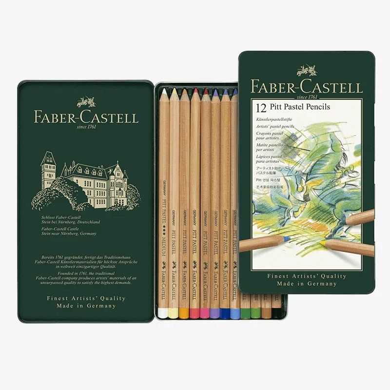 The Pitt® Pastel Pencils contain a high level of pigment with excellent lightfastness. They are wax and oil-free, and are perfectly suited for fine and elaborate details, ideal for figure drawing and fine filigree work. Just like the Polychromos® Pastel Crayons they can be easily smudged to create fine color transitions. Only minimal fixing is required, ensuring that the pastel drawings retain their vividness of color. Available as individual pencils or in assorted sets.