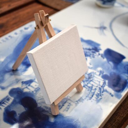 Blank Stretched Mini Canvas with Mini Wood Easel Set.