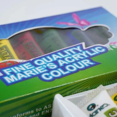 Marie’s 6 Acrylic Tube Set 30ml can be used on surfaces besides canvas, such as wood, metal, fabrics, and ceramics.