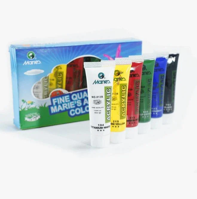 Marie’s 6 Acrylic Tube Set 30ml can be used on surfaces besides canvas, such as wood, metal, fabrics, and ceramics.