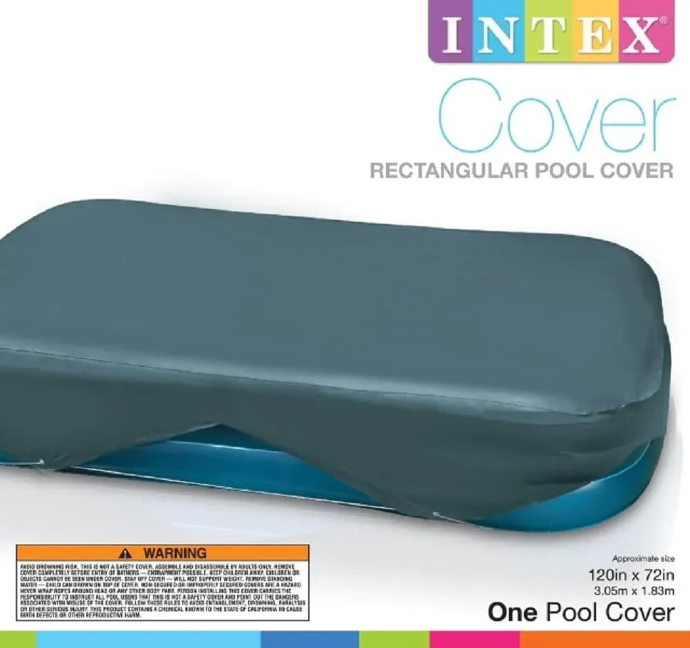 The Intex Rectangular Pool Cover is an accessory designed to protect the Swim Center Family Pool from leaves and debris, helping to maintain clean and fresh pool water throughout the summer. Here are the details provided: