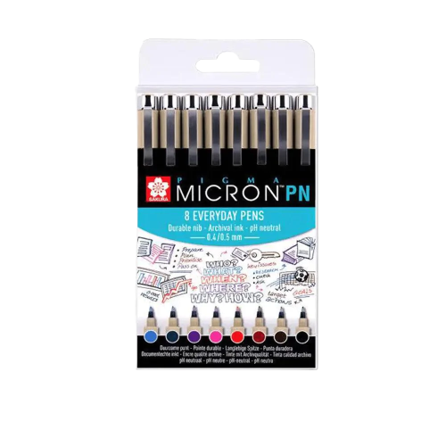 Sakura Pigma Micron PN Pen is a brilliant new addition to the Micron family. Filled with the same lightfast, archival ink as their fineliner cousins, these pens have the added benefits of a durable polyacetal plastic nib and offer brilliant ink flow. The PN pen creates lines of varying widths, from medium to fine, depending on your writing style an how much pressure is applied. These pens are great for everyday writing, whether you are left or right handed.
