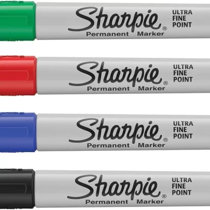 - Includes 4 Sharpie Permanent Markers: black, blue, red and green