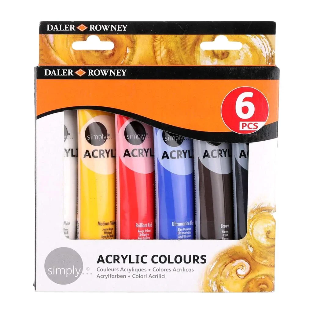 Simply Acrylics are affordable colours that can be used to paint on all conventional art surfaces such as paper, cardboard, canvases, etc. These soft-bodied colours can be used straight from the tube as they wet easily on to the surfaces, or they can be thinned with water.