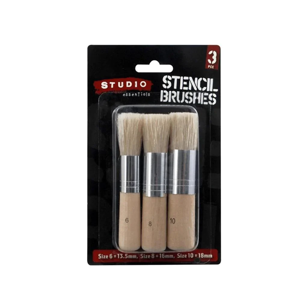Stencil Brushes are level head hoard bristle brushes which are ideal for fresh stencil application, specking and making intriguing surfaces and examples.